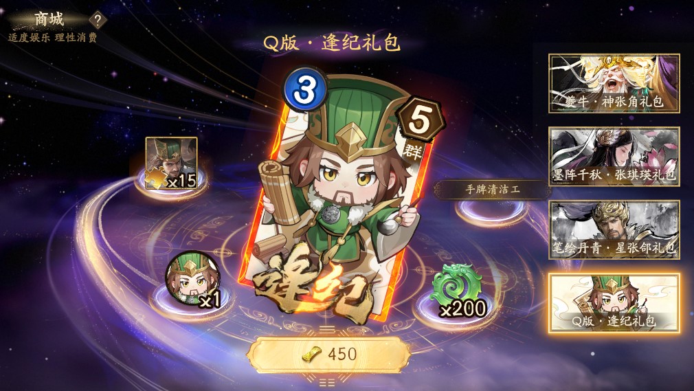 购买后可获得Q版·逢纪皮肤、Q版·逢纪头像、逢纪碎片*15、宝玉*200、称号【手牌清洁工】。