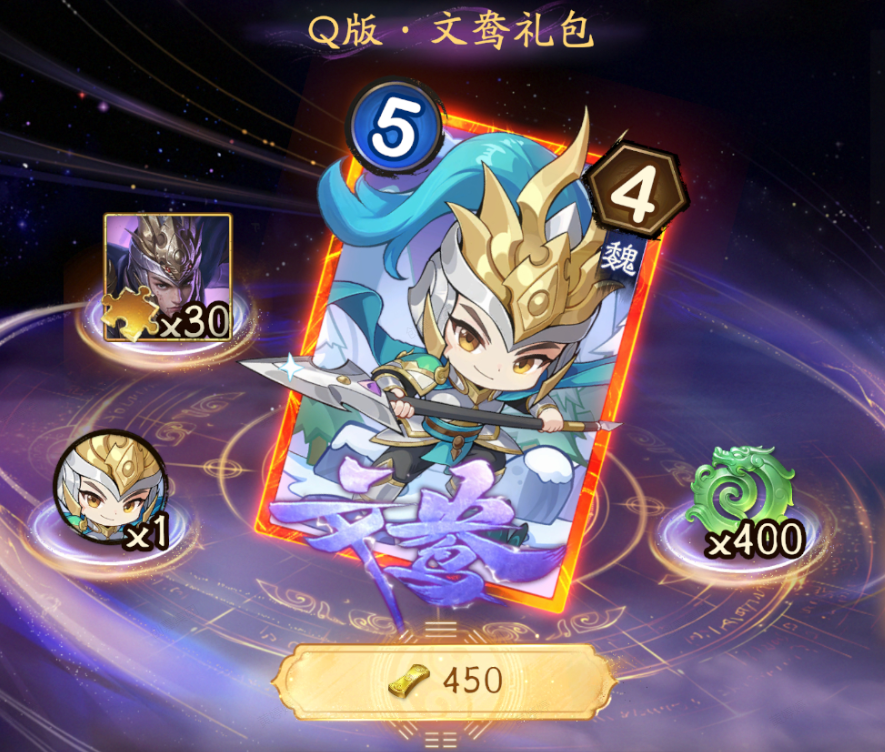 购买后可获得Q版·文鸯皮肤、Q版·文鸯头像、文鸯碎片*30、宝玉*400。