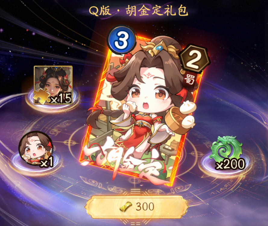 购买后可获得Q版·胡金定皮肤、 Q版·胡金定头像、胡金定碎片*15、宝玉*200。
